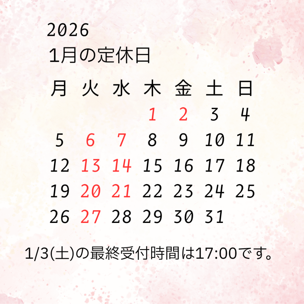 2026年1月の定休日